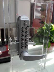 產(chǎn)品簡介:KEYLEX機(jī)械密碼鎖為全機(jī)械式,不用電池和電源,也不用布線,安裝簡單,可以用12個(gè)按鈕組合記憶密碼,任意設(shè)置,按鈕是特殊加工的不銹鋼按鈕,不會(huì)殘留下使用的痕跡。機(jī)械密碼鎖防盜,美觀,入戶門首選!